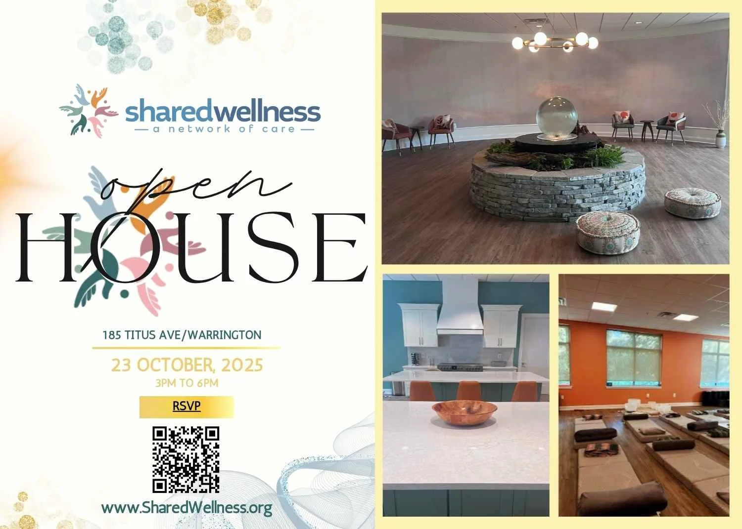 Grand Opening Shared Wellness Center Thursday, October 23, 2025 3:00 PM 6:00 PM Shared Wellness 185 Titus Avenue Warrington, PA, 18976 United States (map) Google Calendar ICS RSVP