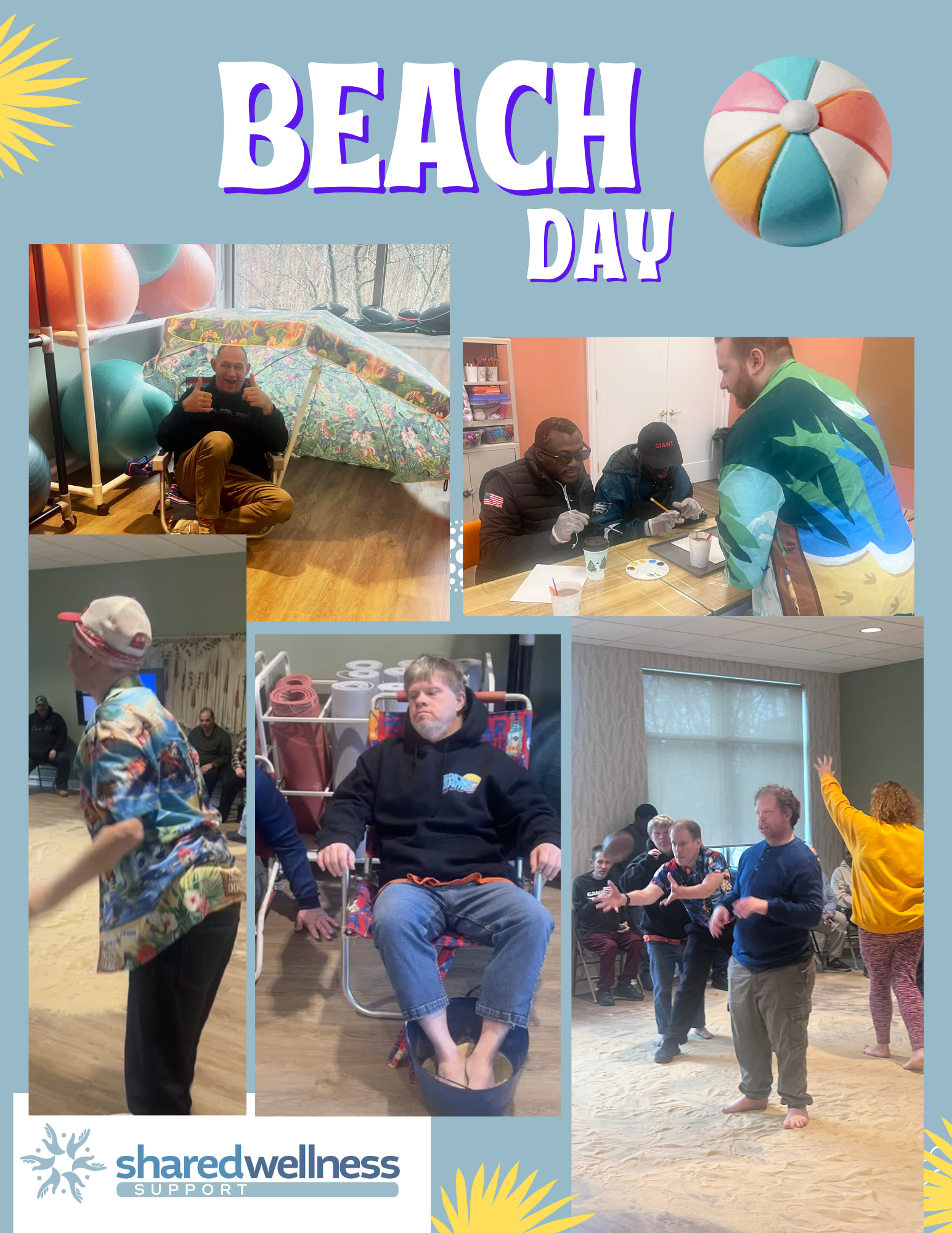 Our Sensory Beach Day brought the feeling of the shore indoors through mindfulness, creativity, and movement. Participants practiced mindfulness before painting beach scenes to support focus and fine motor skills, then enjoyed sensory play—feeling sand underfoot, playing beach-inspired games, and moving to beach-themed music. This Beach day supported whole-person wellness through body awareness, creativity, movement, and social connection in a relaxed, engaging environment