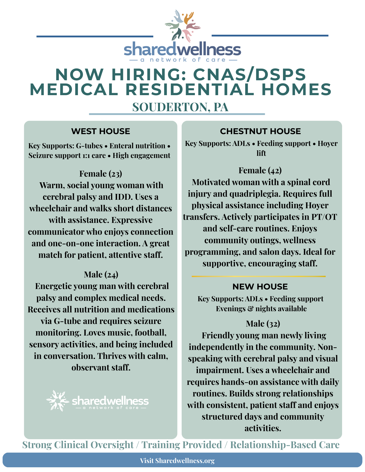 This Warminster opportunity supports an active young man with complex medical needs in a home setting — not an institution.